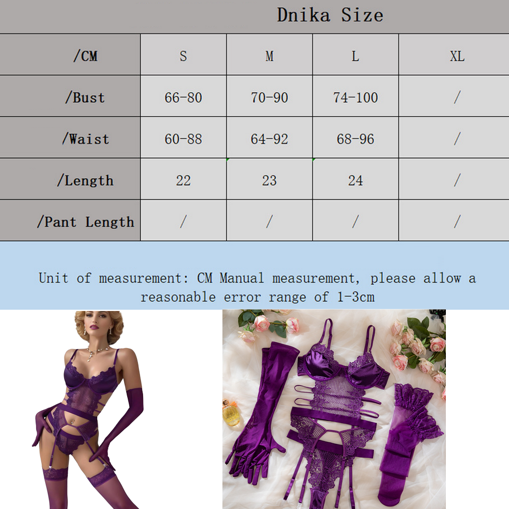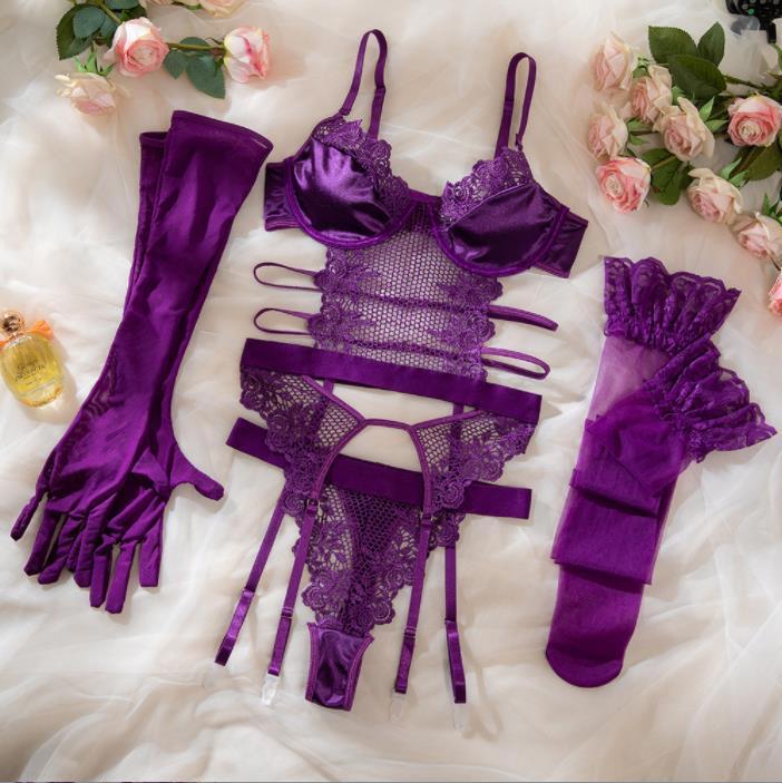 2025 New Russia Design Romantic Purple Woman Sexy Lingerie with Stocking Gloves