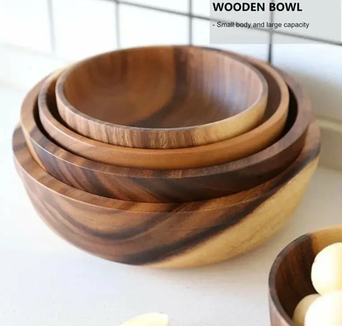 Acacia wooden bowl household Japanese tableware environmentally friendly yogurt bowl salad bowl