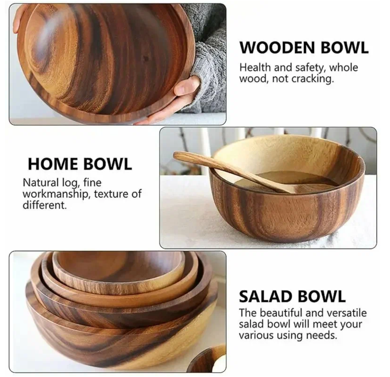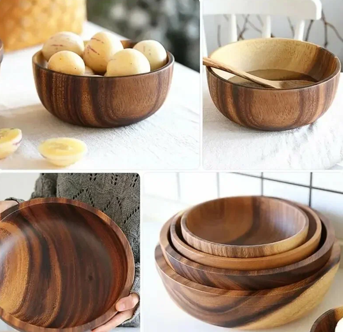 Chinese wooden bowls are traditional utensils with both practical and aesthetic values in Chinese food culture.The material selection of this product is taken from natural acacia wood, which has been hand-cut and polished by craftsmen, and the bowl body shows the unique warm texture and amber color of the wood.The mouth of the bowl is round and smooth, the edges are polished to an even thickness, and the touch is delicate and does not touch the hands; the bottom of the bowl is mostly designed with small flat feet, which is placed safely and not easy to dump.The device type is simple and simple, without complicated carvings, but it implies the traditional philosophy of “Tianyuan Place”. The inner wall is smooth and easy to clean, and the outer wall retains the original texture of the wood, which is both non-slip and natural. Texture.When serving hot food, the heat conduction is slow and not hot. When serving cold food, the ingredients can be kept fresh and refreshing, especially suitable for rice, soup or cold salad. The true flavor.As a carrier carrying the wisdom of Oriental diet, wooden bowls are not only tableware, but also condense the aesthetics of life in harmonious coexistence between man and nature.