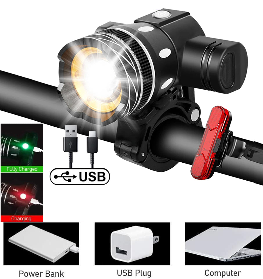 Bike Lights Set for Night Riding Bicycle Lamp Front and Back USB Rechargeable