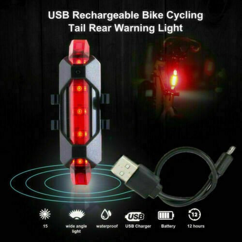 - USB rechargeable bicycle taillight and auto cut off when fully charged.