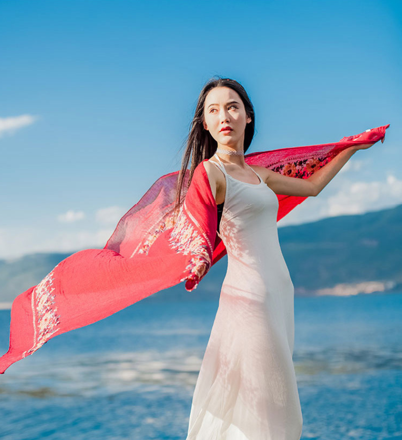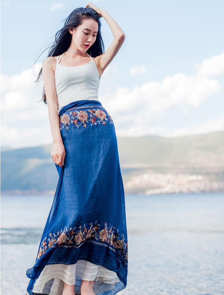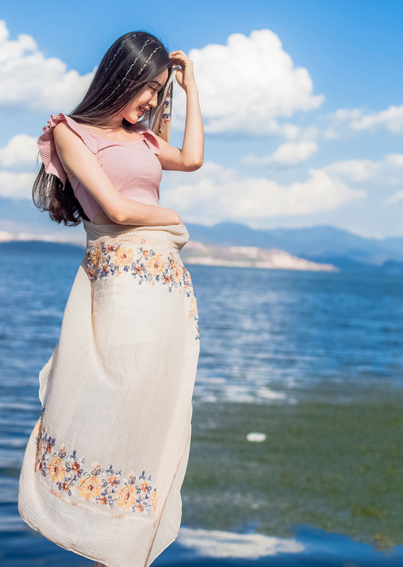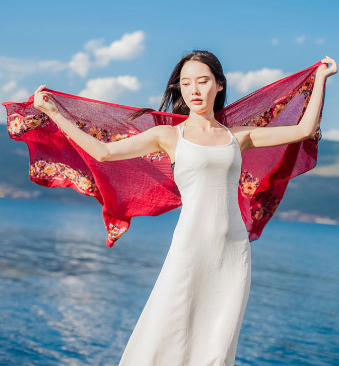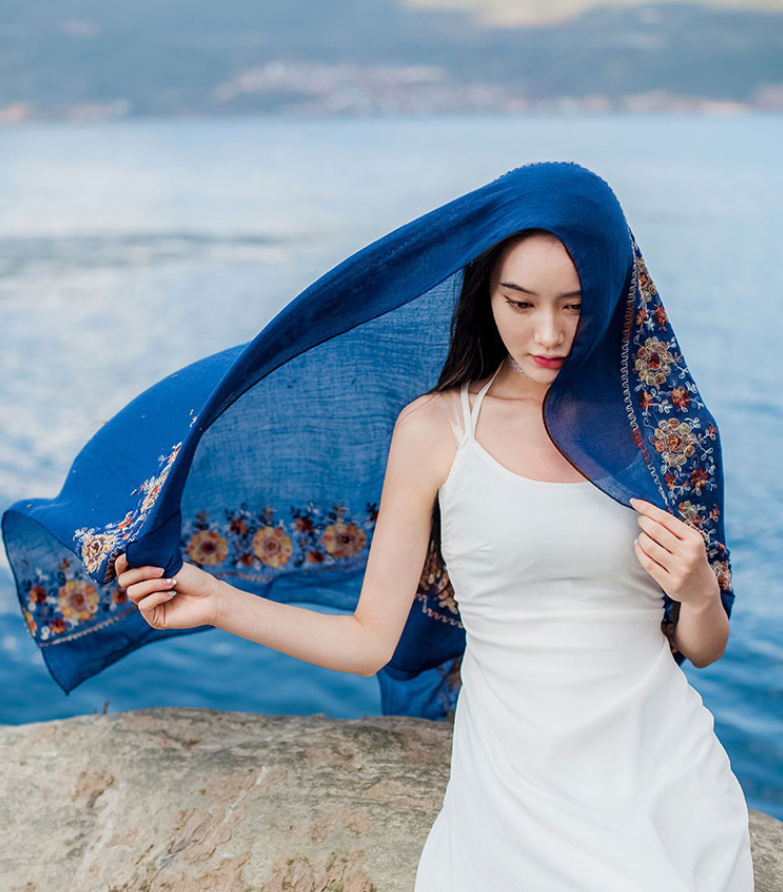 Flower embroidery Women Beach Scarf Cotton Linen Shawls and Wraps