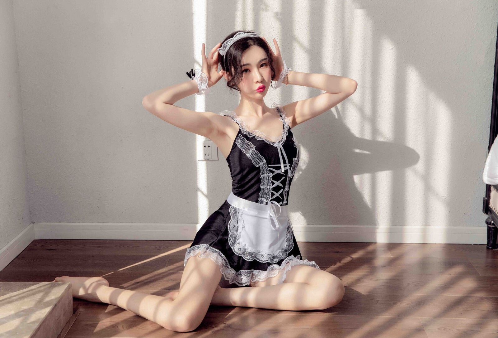 Girl Sexy Lingerie Babydoll Maid Cosplay Uniform Lace Dress Sexy Underwear Set