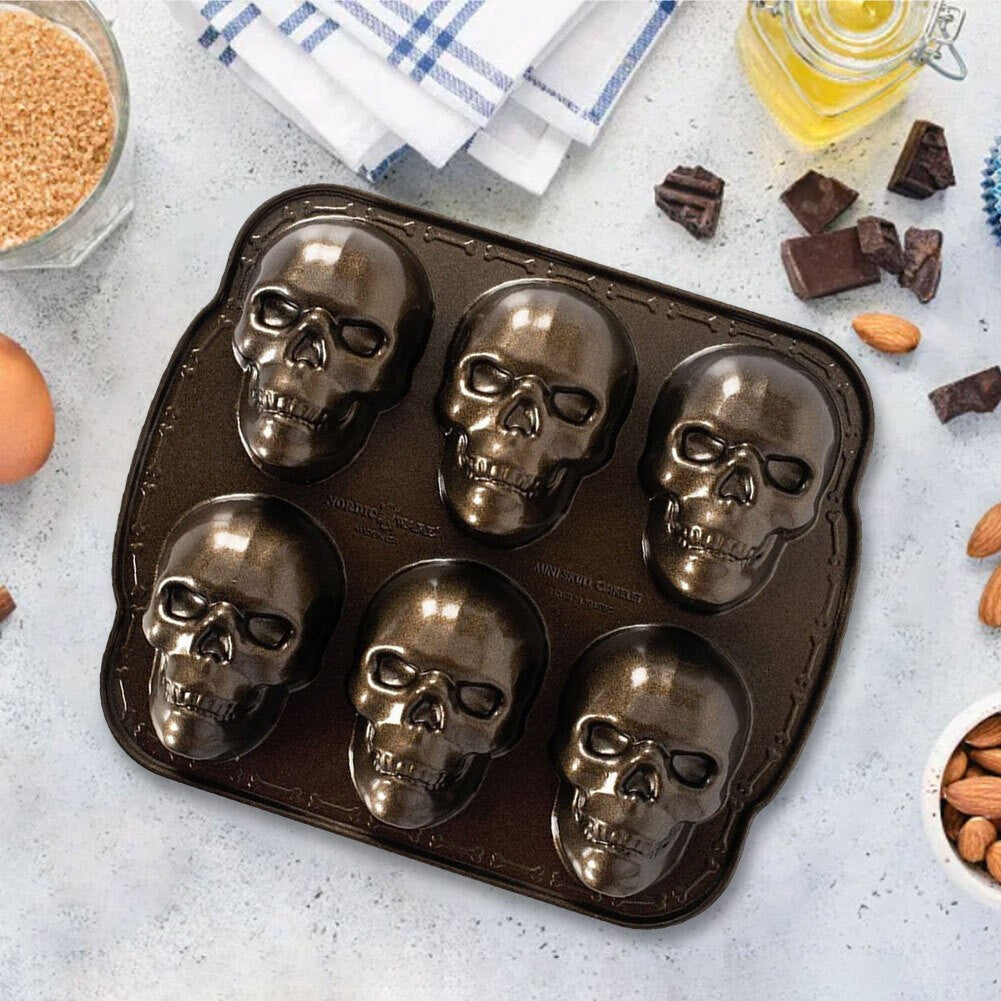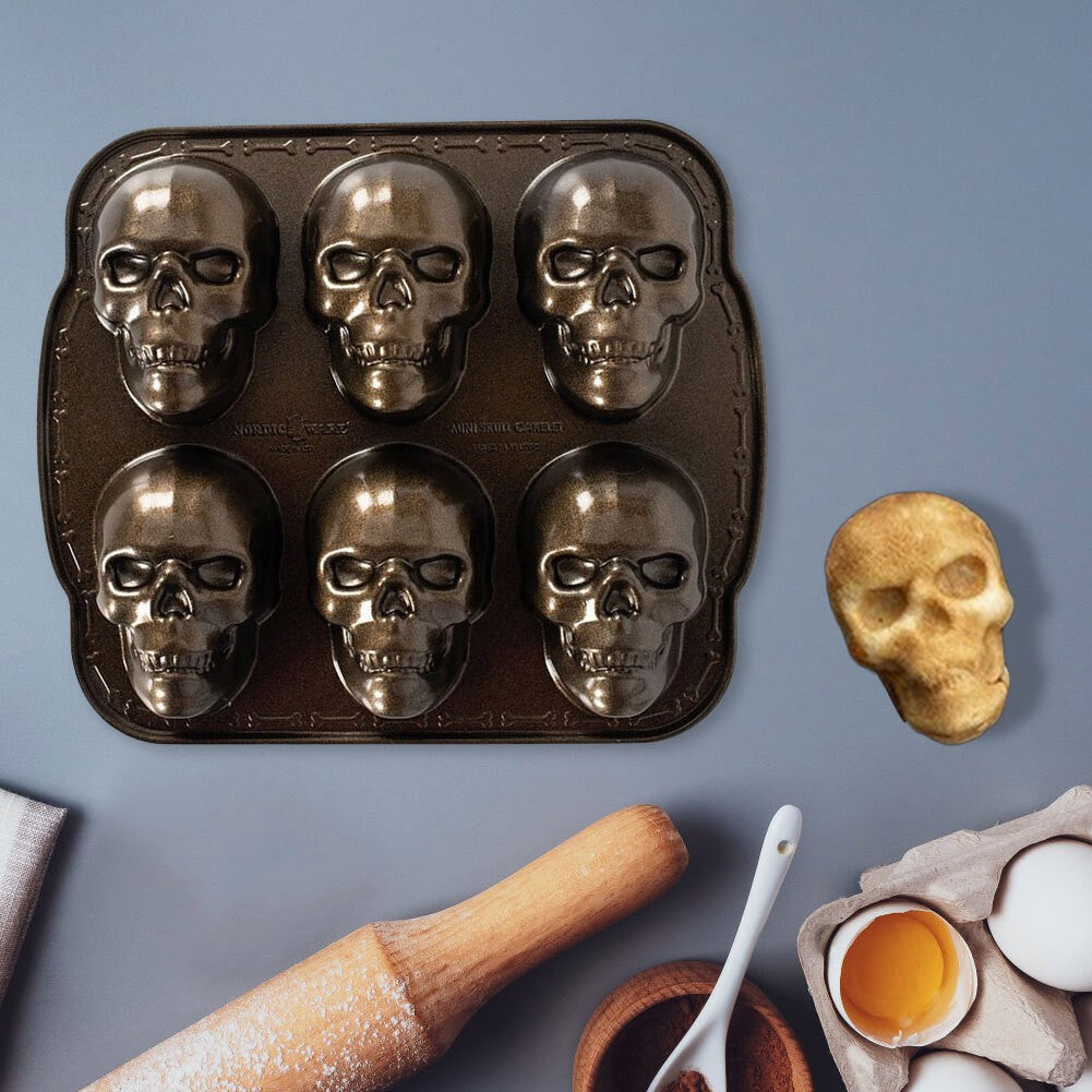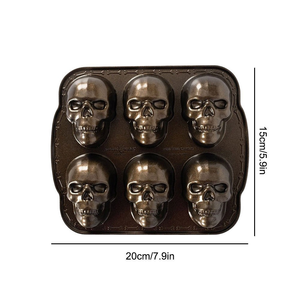 Halloween Skull Cake Pan Molds 6 Cavity Cake Baking Molds Non-Stick Skeleton Chocolate Molds Stainless Steel for Party Supplies