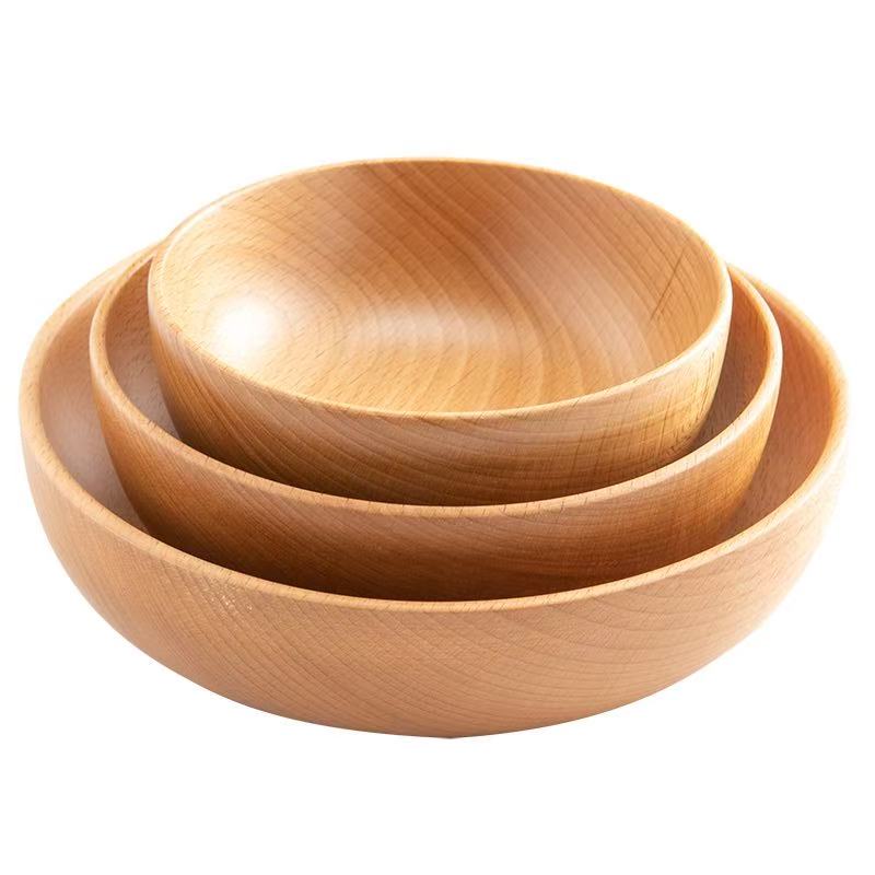 Chinese wooden bowls are traditional utensils with both practical and aesthetic values in Chinese food culture.The material selection of this product is taken from natural beech wood, which has been hand-cut and polished by craftsmen. The bowl body shows the unique warm texture and amber color of the wood.The mouth of the bowl is round and smooth, the edges are polished to an even thickness, and the touch is delicate and does not touch the hands; the bottom of the bowl is mostly designed with small flat feet, which is placed safely and not easy to dump.The device type is simple and simple, without complicated carvings, but it implies the traditional philosophy of “Tianyuan Place”. The inner wall is smooth and easy to clean, and the outer wall retains the original texture of the wood, which is both non-slip and natural. Texture.When serving hot food, the heat conduction is slow and not hot. When serving cold food, the ingredients can be kept fresh and refreshing, especially suitable for rice, soup or cold salad. The true flavor.As a carrier carrying the wisdom of Oriental diet, wooden bowls are not only tableware, but also condense the aesthetics of life in harmonious coexistence between man and nature.