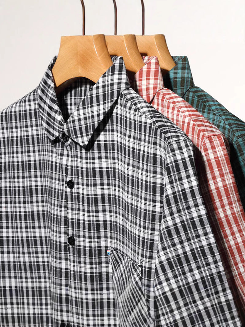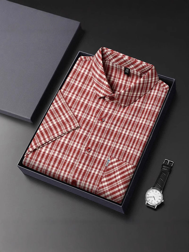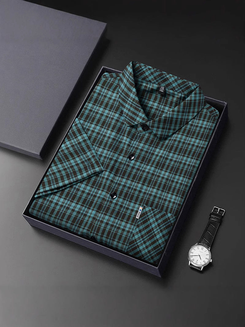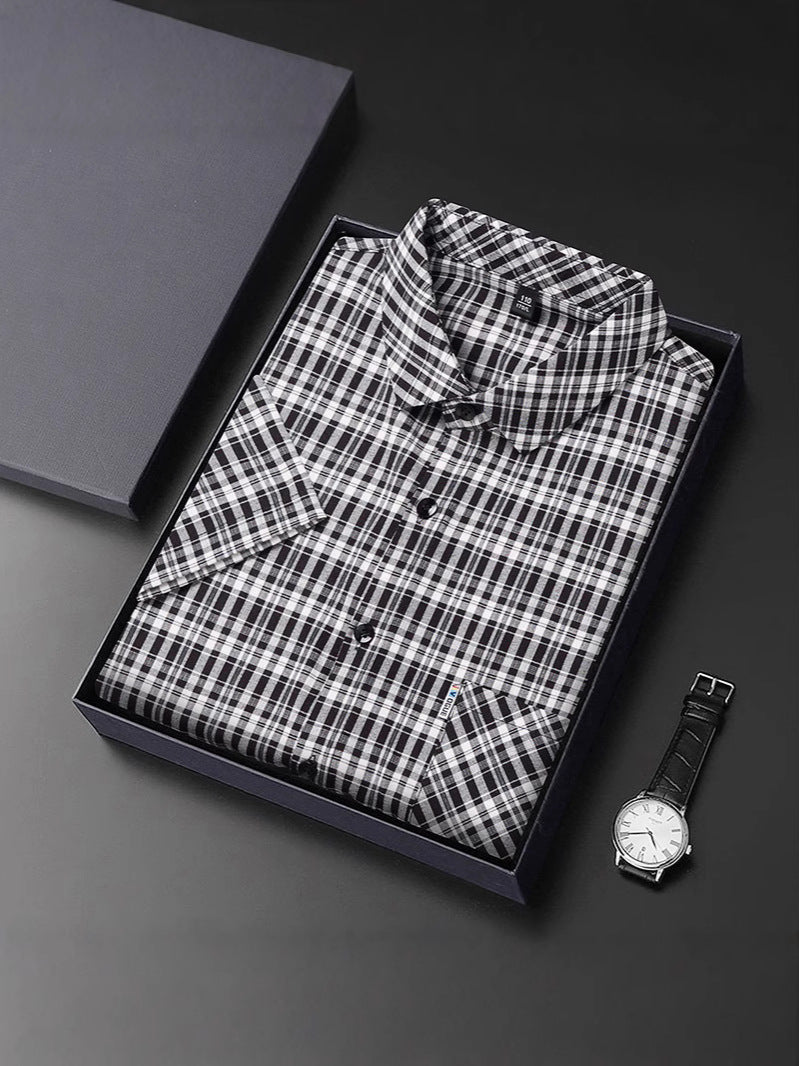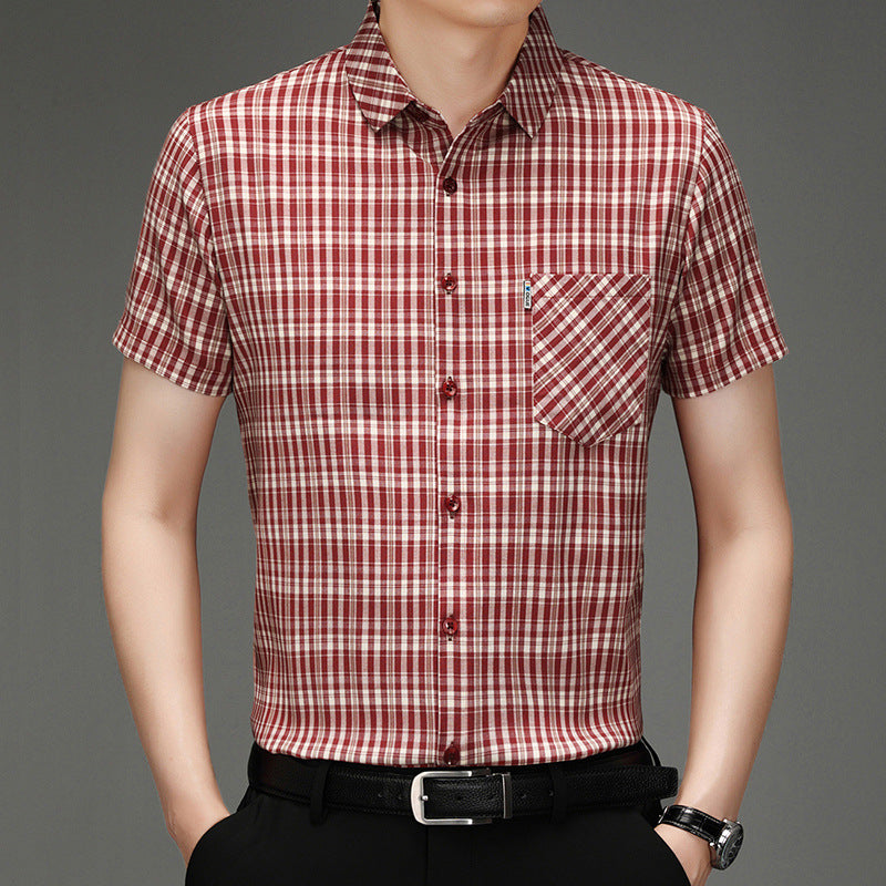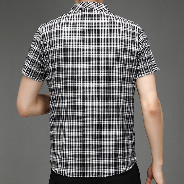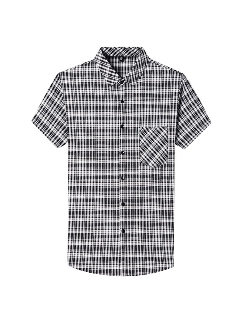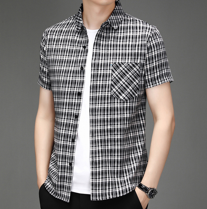 New Polo Shirt Men's Slim Plaid Shirt Small Plaid Button Shirt Pocket Office