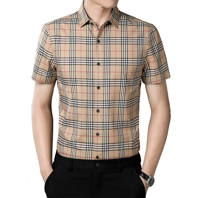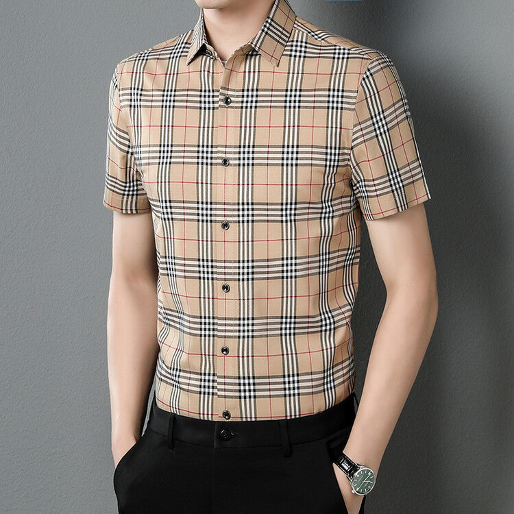 Plaid Short Sleeve Men's Shirt Vintage Men Casual Shirt Summer Thin Tops Shirt
