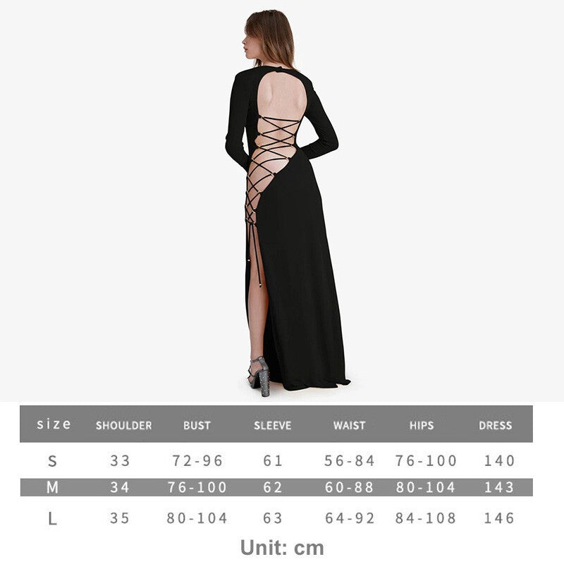 Sexy Long Sleeve Bandage Backless Dress Elegant Party Split Lace Up Dress