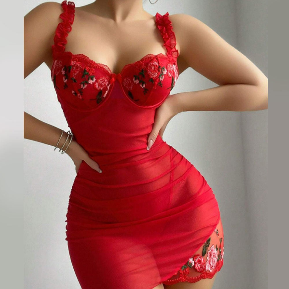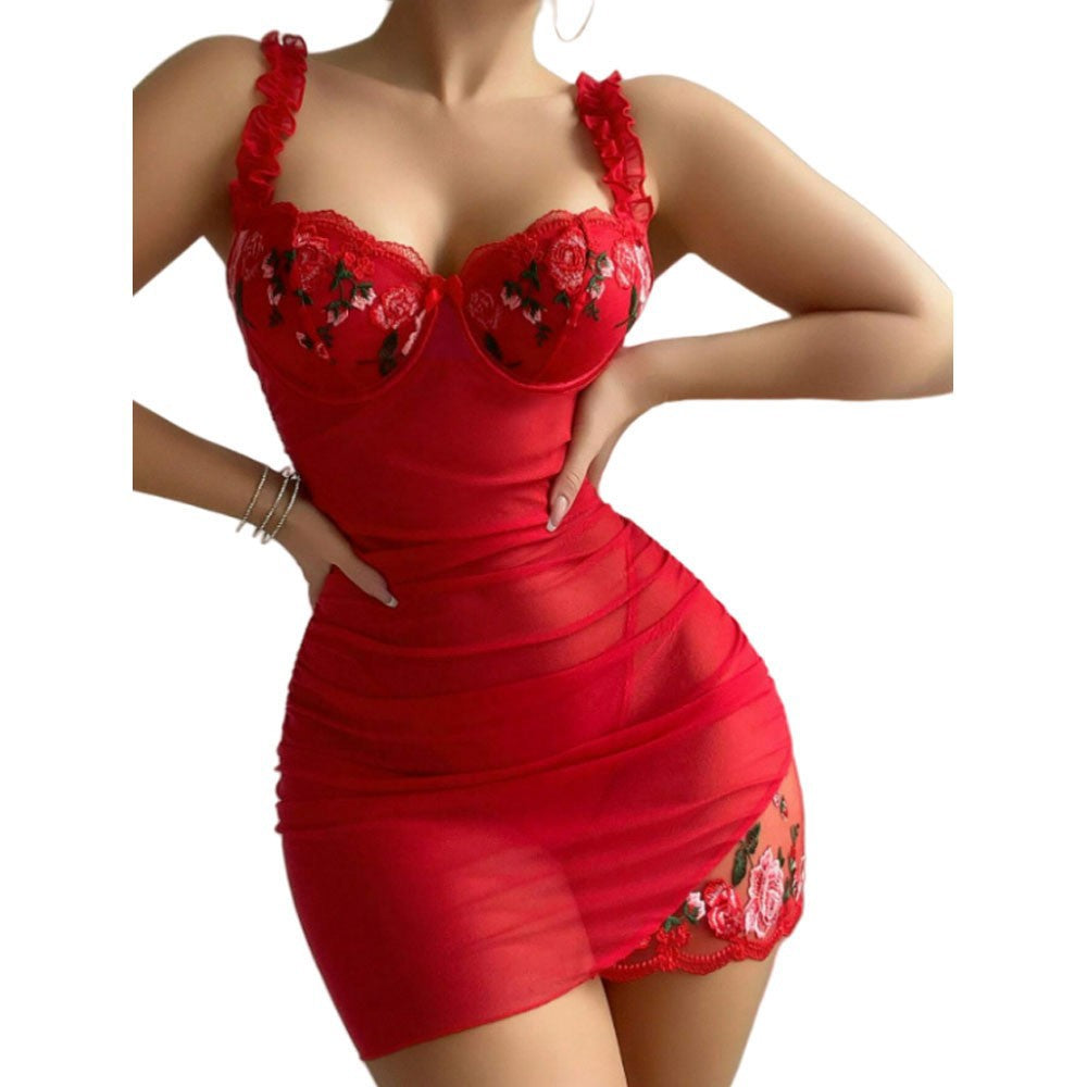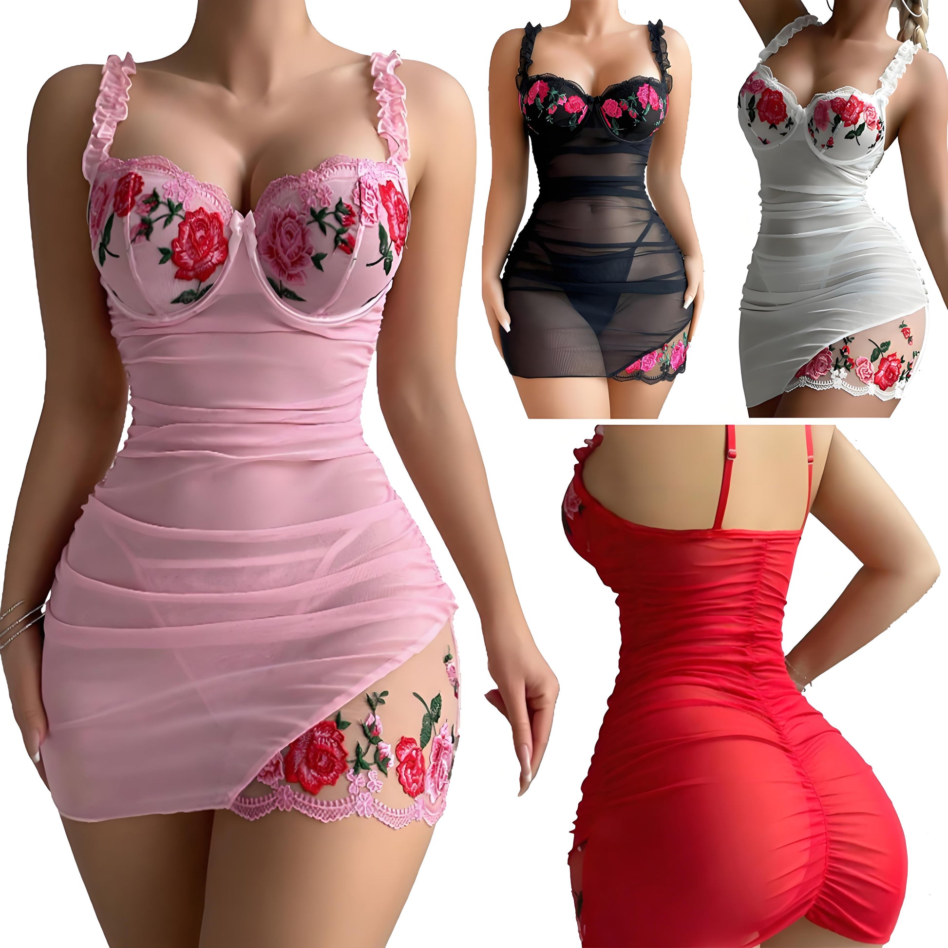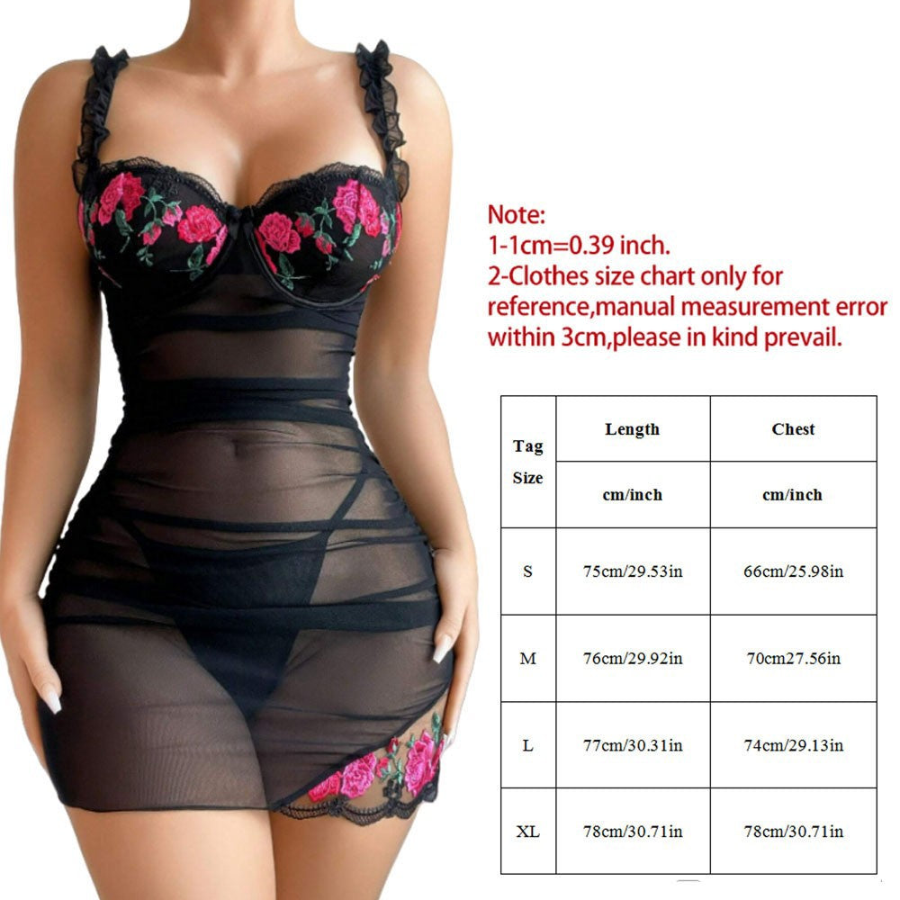 Underwear Dress Sexy Lingerie Floral Sleepwear Nightdress Mesh Lace Women