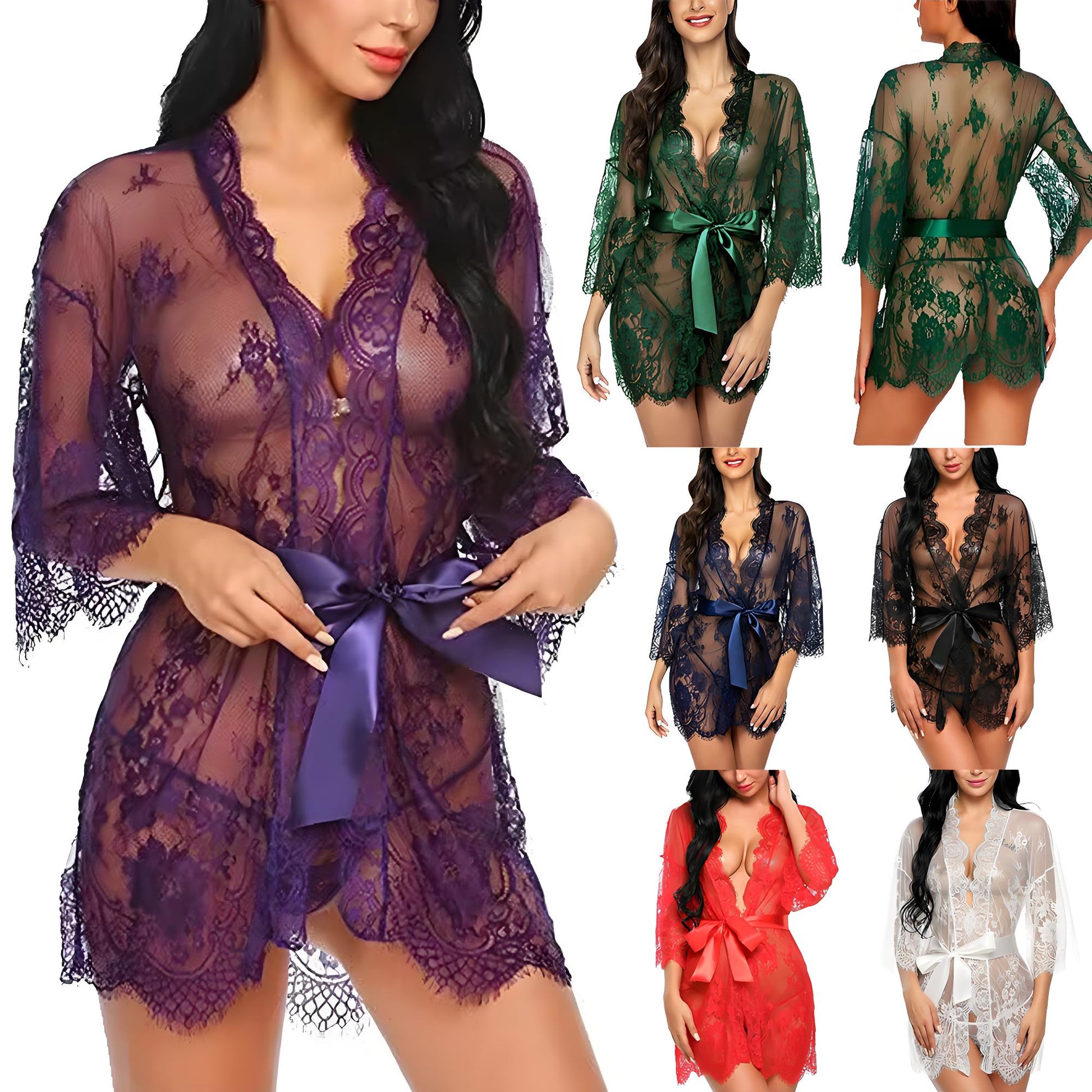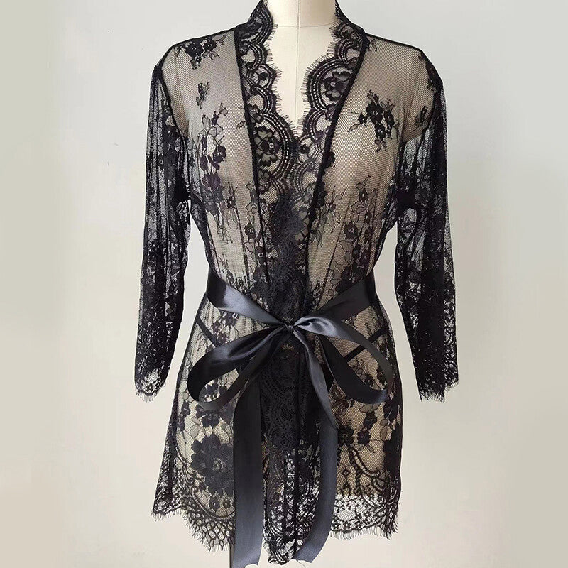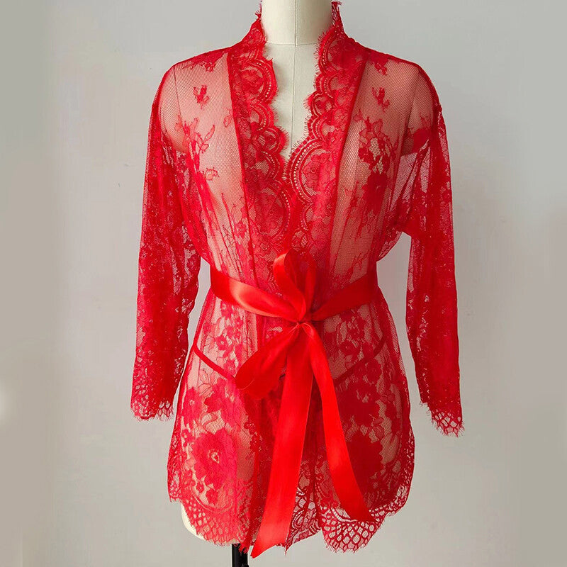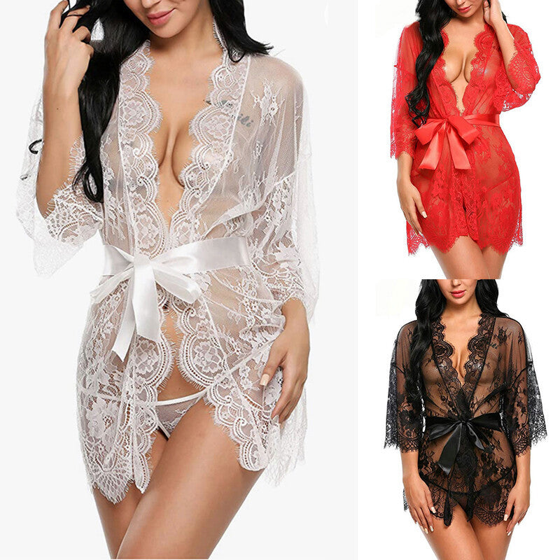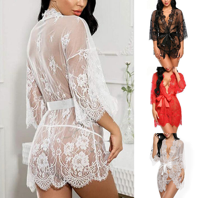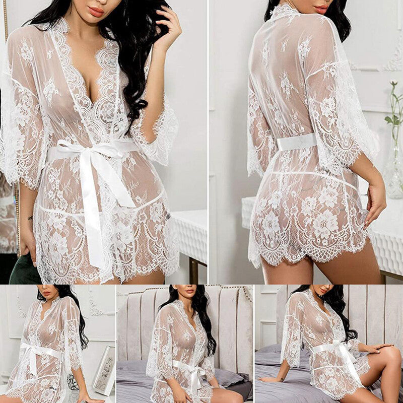 Lace Transparent Sleepwear Babydoll Pajamas Nightdress Bathrobes Sexy Lingerie