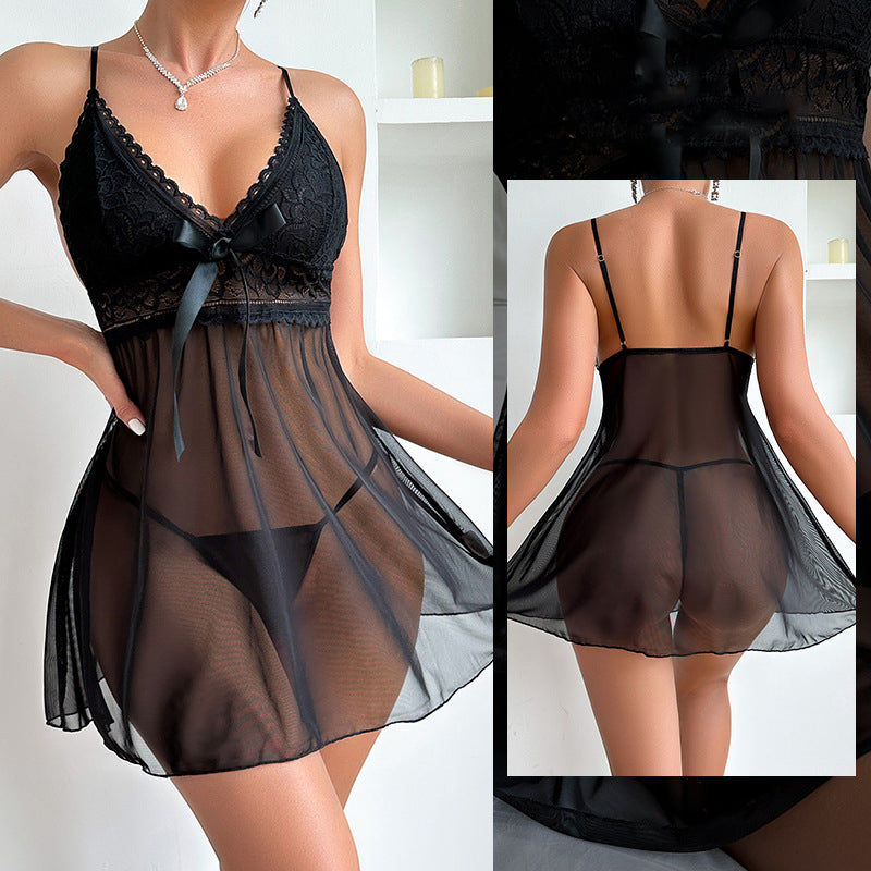 Women Sexy Lingerie Lace Dress Thong Set Underwear Babydoll Teddy Sleepwear Pajamas BLACK WHITE RED