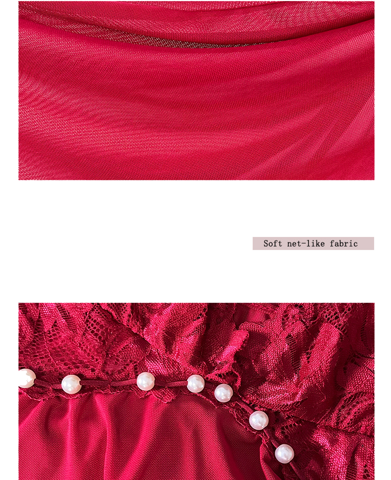 Women Sexy Lingerie Lace Dress Thong Set Underwear Babydoll Teddy Sleepwear Pearl Pajamas BLACK WHITE RED