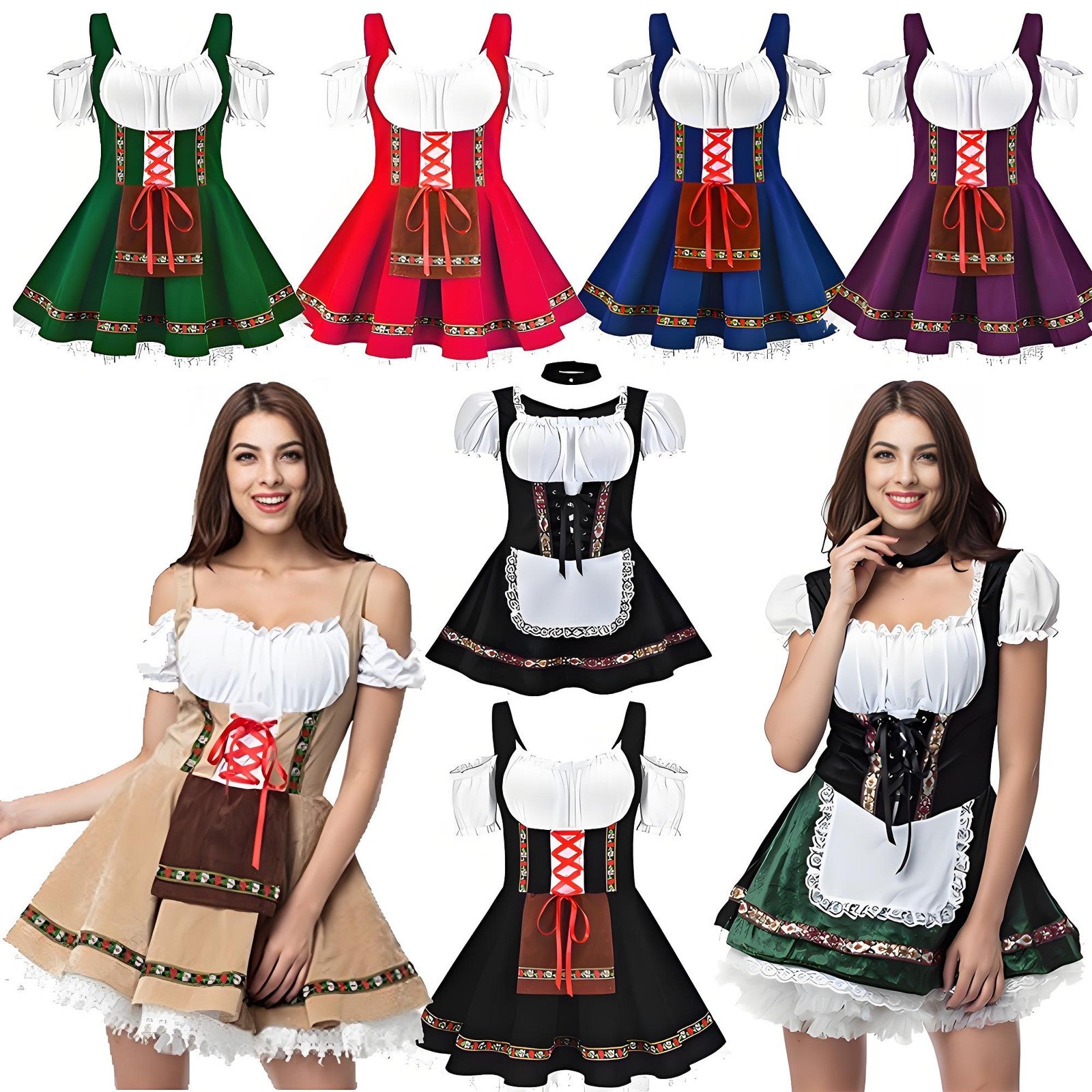 Womens German Bavarian Dirndl Dress Apron Oktoberfest Fancy Beer Maid Costume