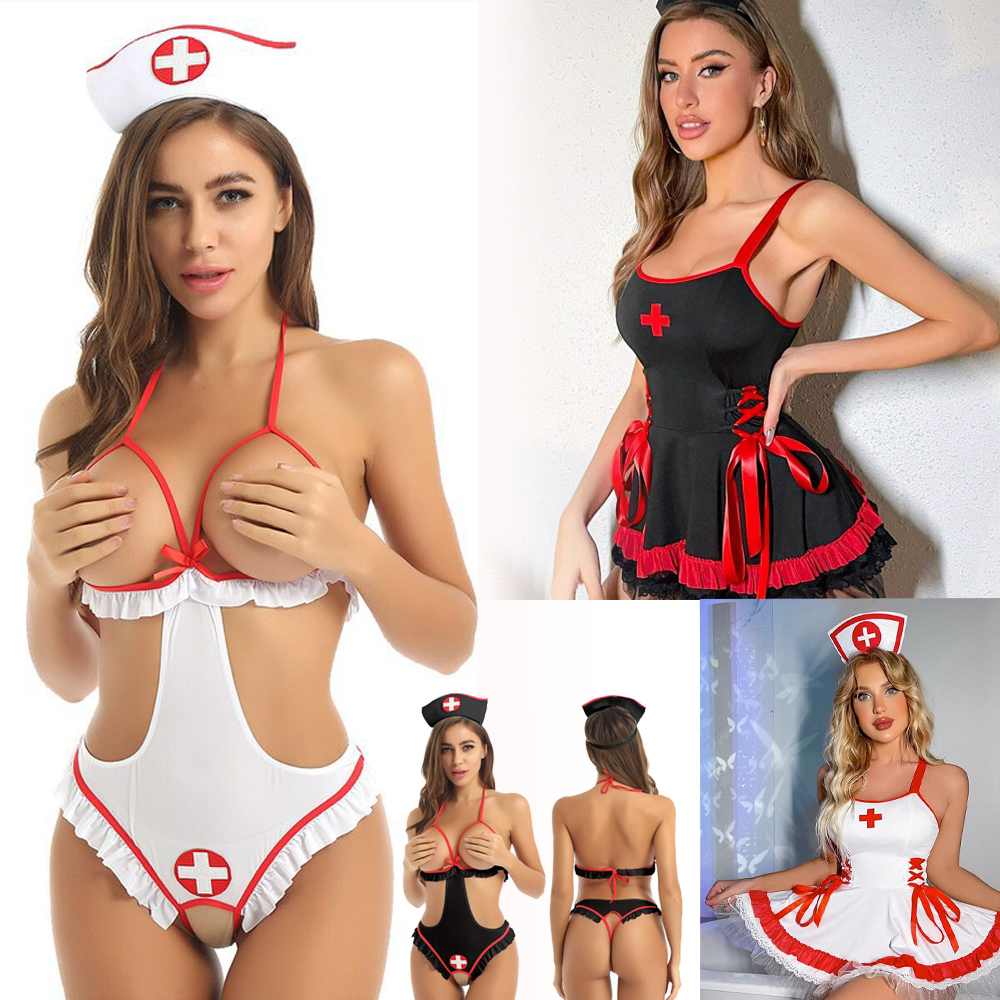 Women's Sexy Lingerie Naughty Nurse Costume Babydoll Bodysuit Cosplay Uniform