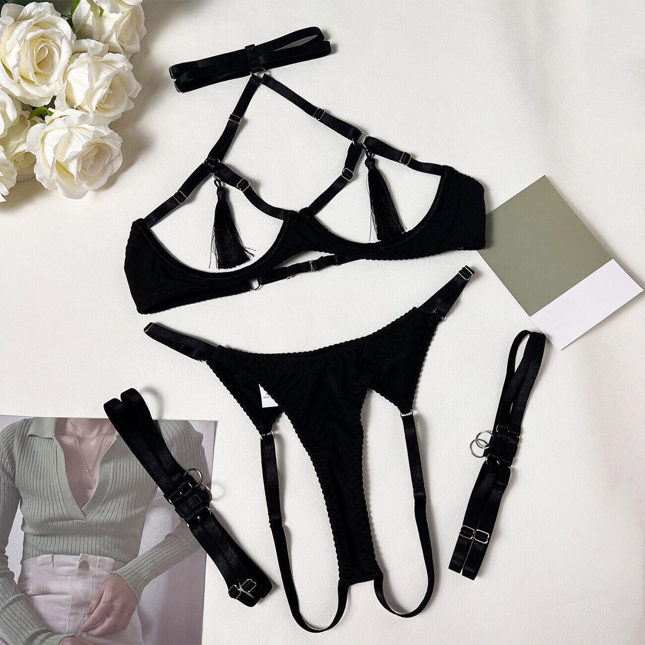 Women's Sexy Nightwear Lingerie Lace Babydoll Bra Thong Set Sleepwear Underwear