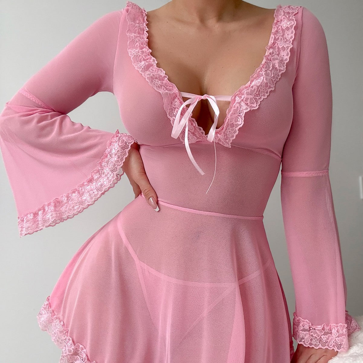 Womens Sexy See Through Lace Babydoll Mini Dress Sleepwear Lingerie Underwear