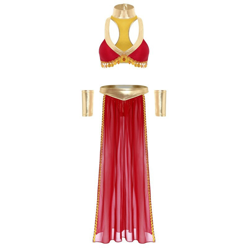 Womens Tassel Fringe Bra Top Side Slit Skirt Accessories Belly Dancewear Outfits