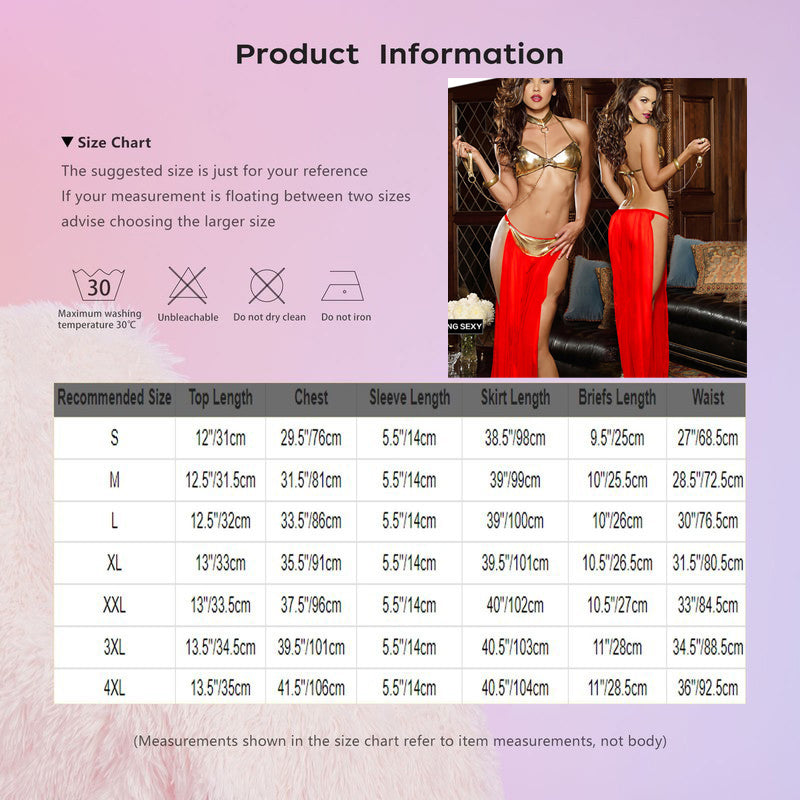 Size Chart: The suggested size is just for your reference. If your measurement is floating between two sizes, advise choosing the larger size. (Measurements shown in the size chart refer to item measurements, not body)